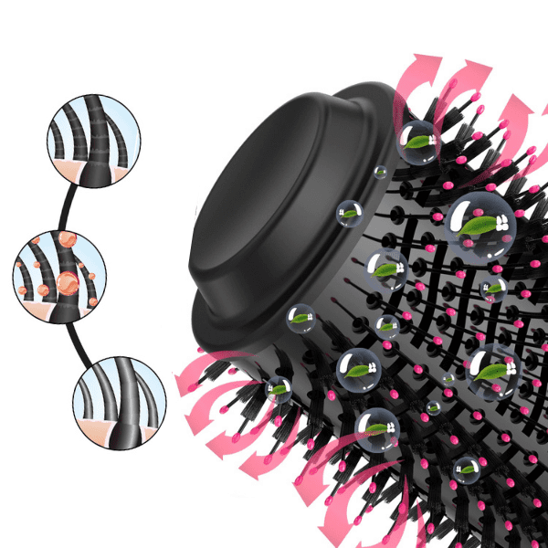 Con un diseño único y novedoso, cuenta con una tecnología iónica equipado con agujas de Nailon y cerdas cerámicas que te ayudarán a reducir el encrespado, dejando un pelo suave y brillante.